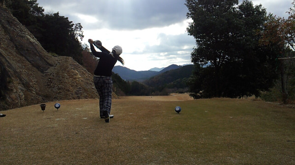 佐藤愛莉(高校1年)の12番ティーショット(同じくバックから)