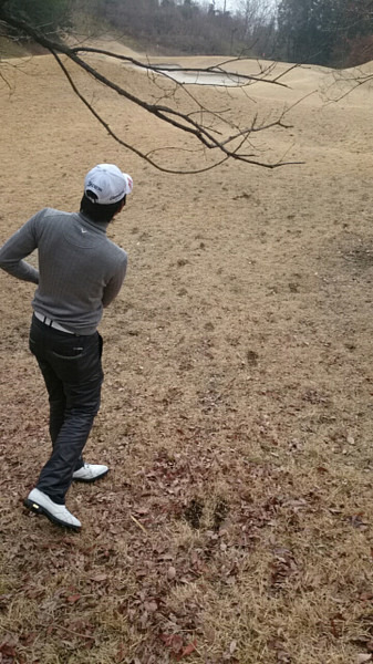 うまく枝の下を通してグリーン右に転がし上げて・・・