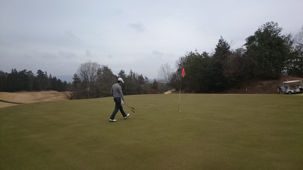 2番ミドル、セカンド1.5メートルにつけるもカップに蹴られ、パー。